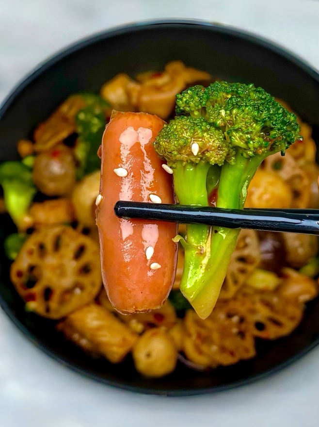 接下来就是分层烹饪的艺术。先利用底油,将腌制好的鸡翅或午餐肉煎至两面金黄,盛出备用。然后根据食材的耐煮程度,耐煮的根茎类如土豆、藕片可以先下锅过油,保持脆度;不耐煮的绿叶菜和菌菇类则只需快速焯水或过油三十秒即可。这样处理能保证所有食材在最后合炒时,口感都处于最佳状态,不会出现土豆还没熟、西兰花已经烂掉的尴尬。