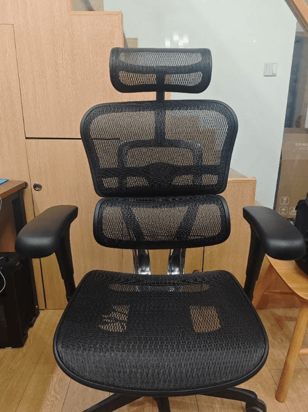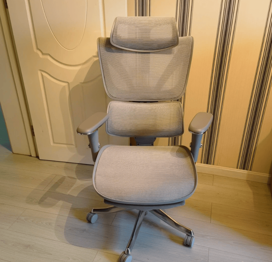 椅子是常见的工学椅造型,设计简洁实用,黑灰配色规整,动态腰枕用着很省心,不管是正坐办公还是轻微后仰,腰部都能持续贴合支撑,没有顶腰的不适感。网布透气性不错,夏天长时间办公也不闷汗。调节功能很全面,日常办公和短暂休息都能找到舒服的姿势。稍微不足的是头枕仅支持上下和角度调节,没有前后调节功能,对部分颈部支撑需求高的人来说可能不够适配,但整体满足长时间办公需求没问题。