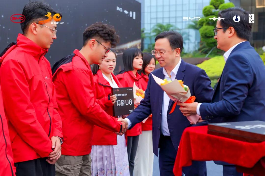 不仅如此,比亚迪还将关爱延伸至近百万员工,为他们准备了30台新车使用权,涵盖各个职能和地区的员工,体现了公司对员工的重视与关怀。王传福在现场向每位中奖员工致以诚挚的祝贺,进一步增强了团队的凝聚力。