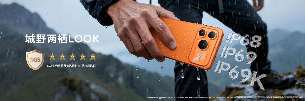 机身可靠性全面升级,抗摔抗弯满级防水荣耀Power2打造了强大的机身可靠性,机身中框采用四角榫卯卸力设计,抗摔能力提升25%,抗弯能力提升22%,整机通过SGS金标五星整机抗跌耐摔+抗挤压认证。同时,其还具备IP68+IP69+IP69K满级防尘防水,支持超高温、超时长、任意种类防水以及10000+次反复入水无忧四重防护,即使在极端户外环境也能轻松应对。