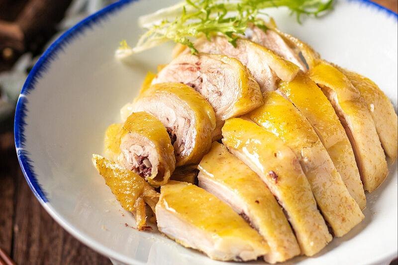 做法上讲究“浸”而非“煮”,火候的把控堪称艺术——鸡肉必须刚好熟透,但靠近骨头的部分还要微微带着些许血丝,这样的鸡肉才达到鲜嫩爽滑的巅峰。鸡出锅后要迅速过冰水,这一激,鸡皮瞬间变得紧实爽脆,呈现出漂亮的金黄油亮色泽。