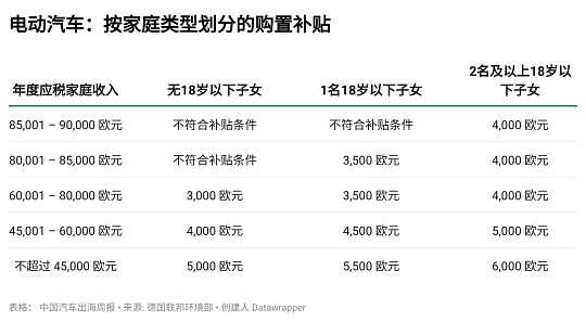 基础补贴:纯电动车3000欧元,插电混动/增程式1500欧元