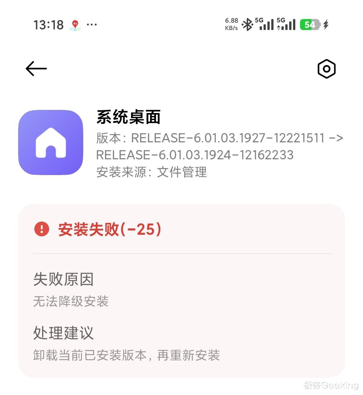 直接覆盖安装就好,而由于小米「堆叠后台桌面」是系统应用,所以需要在系统自带的「文件管理」中找到下载好的 App 安装包并安装,否则会弹出“无法从非官方渠道安装系统应用”的错误提示。