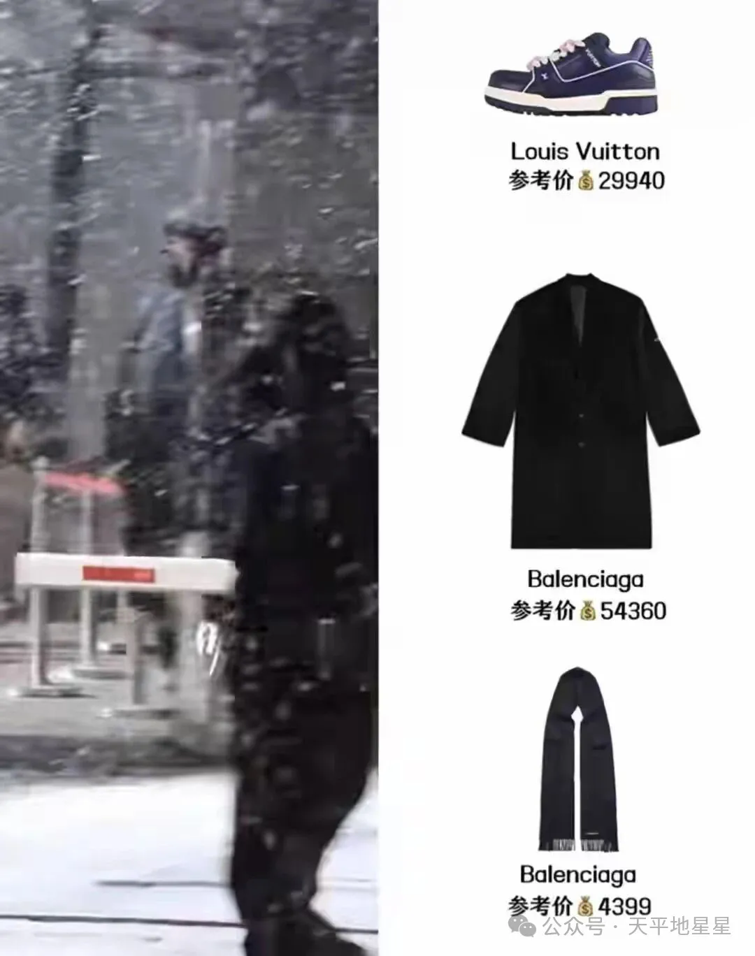 刘宇宁真的特别喜欢穿那种长款大衣,这样的穿搭更是显得他身材修长而孤傲。刘宇宁这一次穿的是巴黎世家的长款大衣,价格在5万左右,围巾也是同款价格在3千左右,鞋子则来自LV价格在3万元左右。