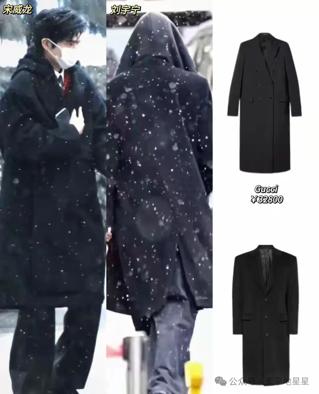 当然,宋威龙的这件大衣也不便宜,它来自古驰价格在3万元左右。