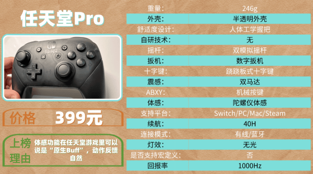 宝藏机型推荐5.任 天堂P ro游戏手柄