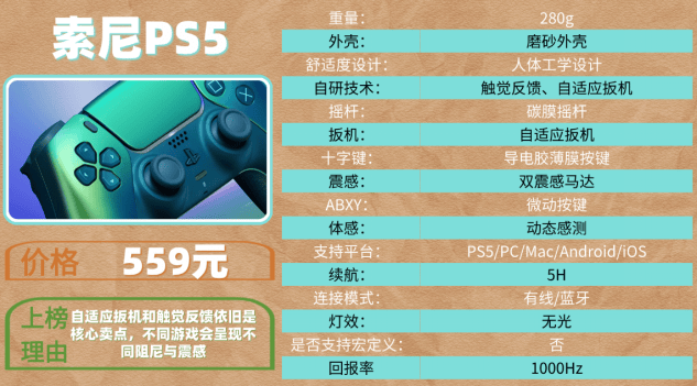 宝藏机型推荐3.索 尼P S5游戏手柄