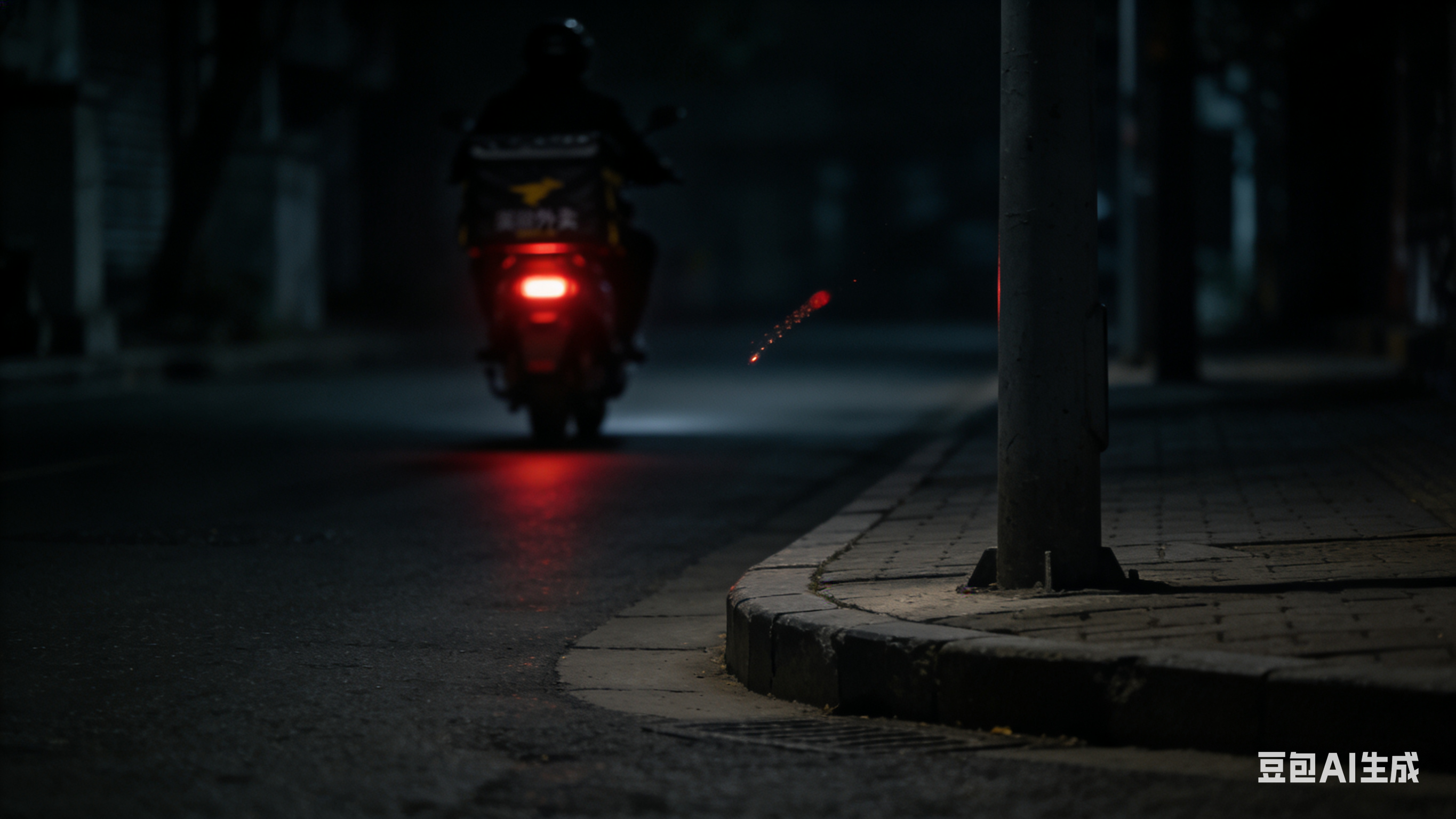 随后,他抬腿跨上车,拧动车把,电瓶车悄无声息地滑入夜色。红色的尾灯像一颗微弱却坚定的星,在拐角处一闪,便消失在了茫茫夜色中。