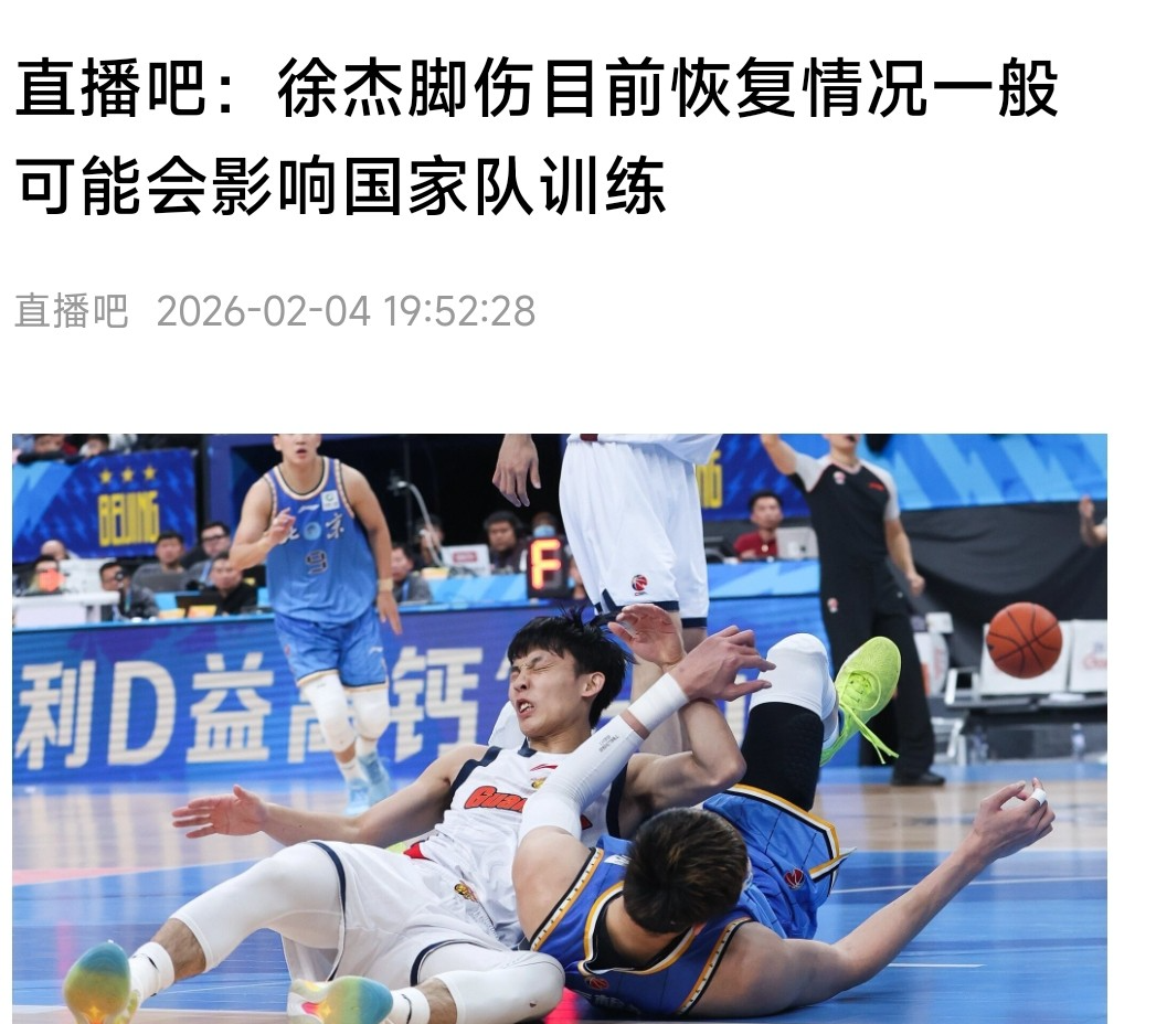 根据爆料,徐杰伤病恢复情况一般,可能会影响国家队集训。可能两个字可以去掉,徐杰的伤病一定会影响训练,他是在2月1日对阵宁波男篮的比赛中遭遇的伤病,而且还是同一个位置二次扭伤,恢复时间一定会长一些。