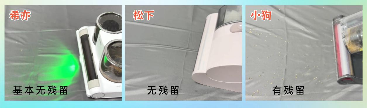 在同一张床垫上铺设相同量的芝麻后,三款除螨仪的表现差异还是挺明显的(下图是清洁后残留)。