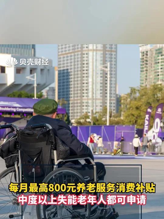 像王女士这样的家庭不在少数。数据显示,我国失能、半失能老年人已达4000万,很多家庭都面临着照护压力大、经济负担重的困境。这次出台的养老服务消费补贴政策,正是瞄准了这一痛点:凡是经评估为中度、重度、完全失能的老年人,都能申请补贴,月度最高申领额度达800元,补贴周期长达12个月,资金专门用于购买养老服务。
