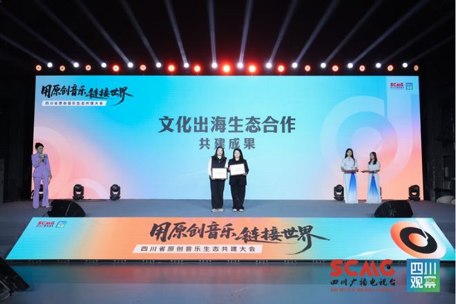 大会现场,四川观察与澳门直播协会举行文化国际推广平台共建赠牌仪式,澳门直播协会会长、澳门中华文化艺术发展协会徐其蓓、与四川观察CEO黄敏共同见证,双方将携手推动四川原创音乐走向澳门、辐射全球,助力中华文化“出海”。在乡村振兴领域,四川观察向中国乡村发展基金会移交歌曲《归来的风》授权书,该歌曲将作为基金会“宜居家园”项目主题曲,基金会则向四川观察颁发“爱心合作伙伴荣誉证书“,实现音乐产业与公益事业的良性互动。