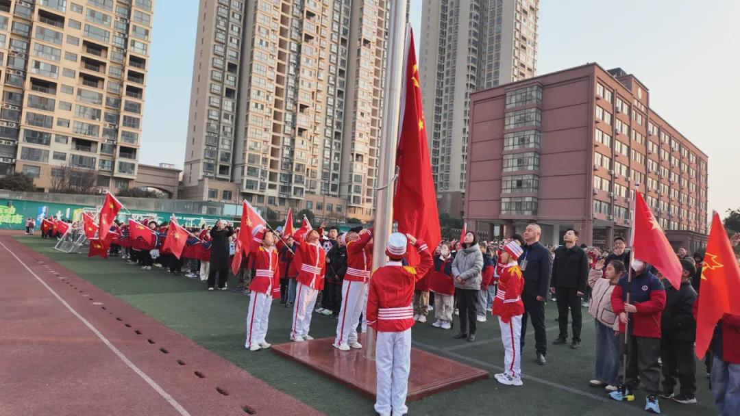 伴随着雄壮的国歌声,五星红旗冉冉升起,全体师生肃立致敬、齐唱国歌,嘹亮的歌声响彻校园上空,传递着师生们心中的爱国情怀与昂扬斗志,大家以奋发有为的精气神,共同开启新学期的崭新风貌。