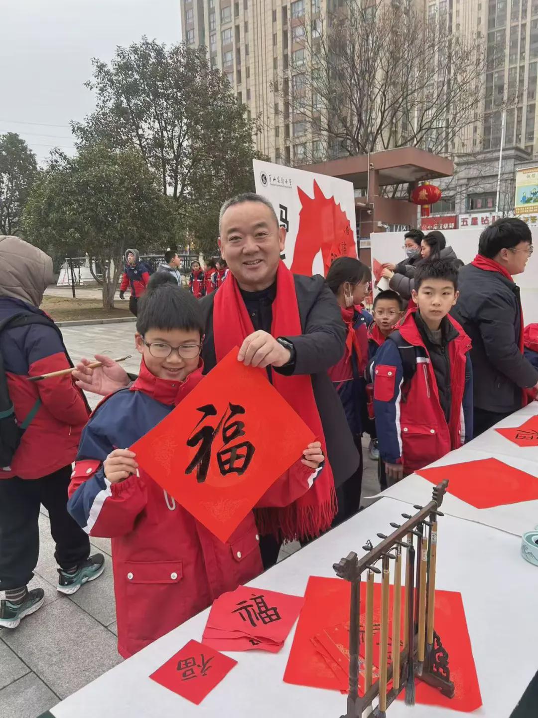 “一笔一福·一愿一安”,写福、贴福、送福成为新学期最具仪式感的开场。孩子们手握画笔,用稚嫩的笔触勾勒出对未来的美好期许,书写下一个个饱含心意的“福”字。校长张勇宏俯身与孩子们并肩创作,耐心倾听他们的心愿,让这份纯真的期盼在校园里生根发芽,也让孩子们在笔墨书香中感受传统文化的魅力与新学期的温暖。