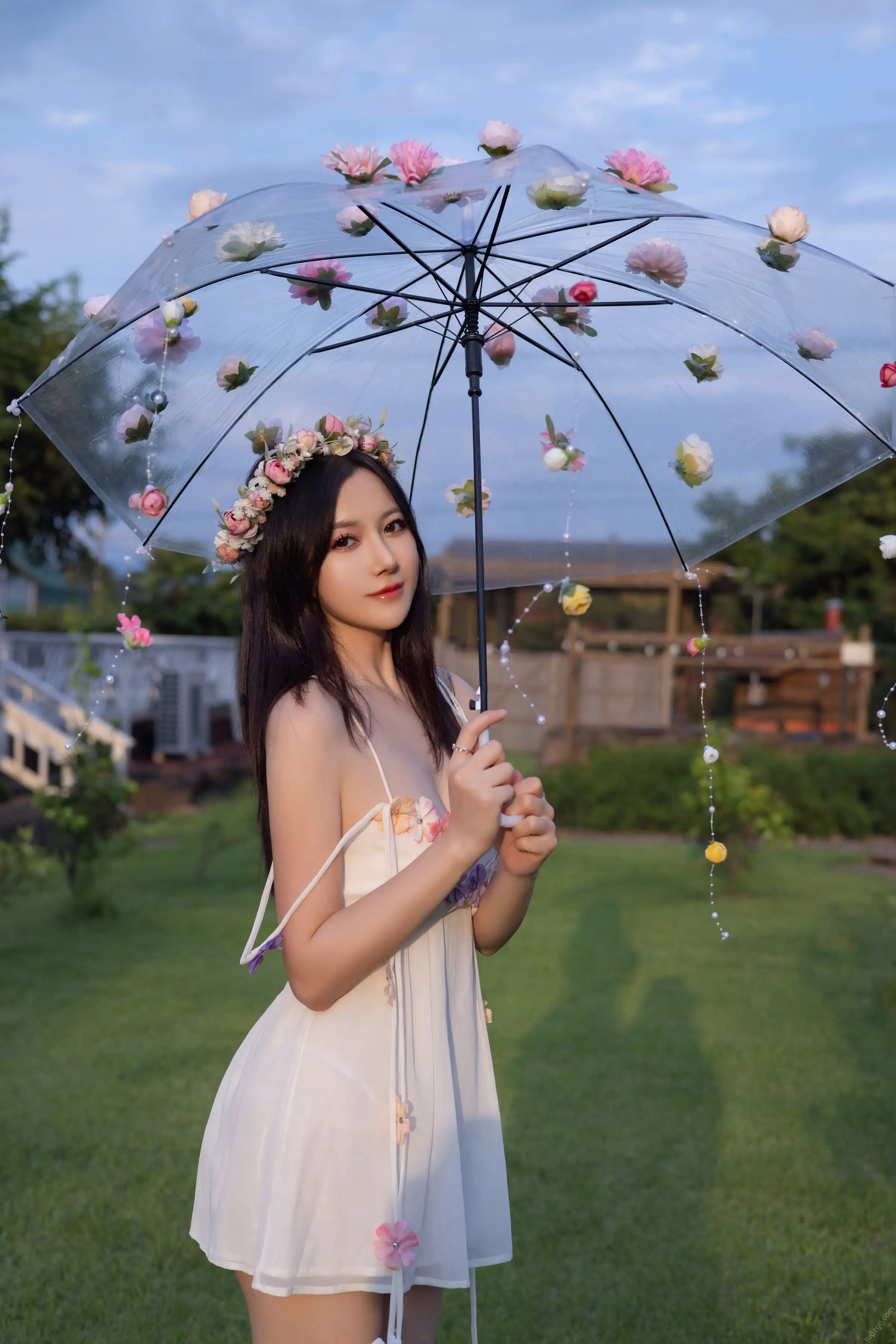 鱼子酱写真|花伞为冠,白裙为裳,是落入凡间的森系仙子吧!