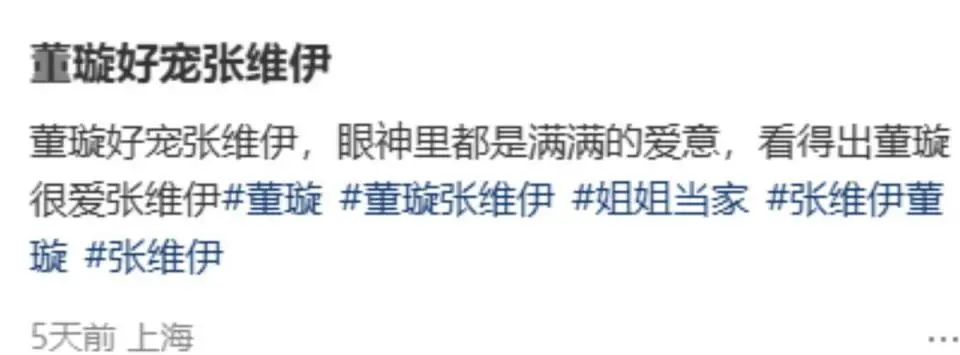 可看到董璇那深情的小眼神儿,就能够感受到:至少现阶段她是绝对不会离开张维伊的,她对张维伊还是有爱。