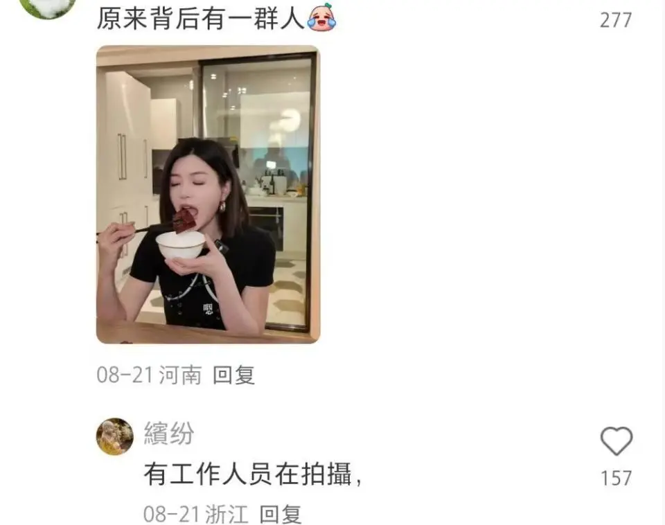 还有网友从视频玻璃的反光上看出了很多人影,意味着她录一次视频,需要整个团队辅助完成,不是真实分享生活,更像是在立人设。