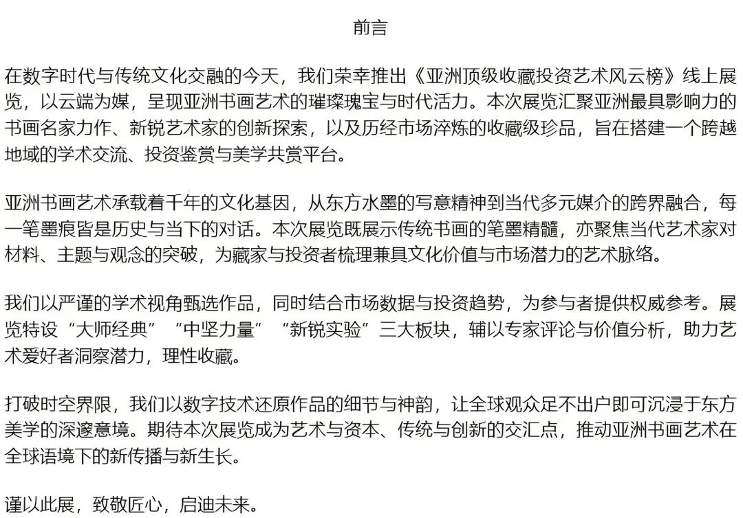 李玉俊先生,当代书画双绝之代表人物。其国画艺术根植千年文脉,融汇古今美学,以书入画,笔精墨妙,在传统与现代之间构建出独具东方气韵的艺术语言。|艺术理念|「以线为骨,以墨为韵,以心造境」李先生深谙中国画“书画同源”之真谛,将书法功力化为绘画筋骨,在笔墨流转间追求形神兼备、意韵相生的至高境界。其作品既见宋元古典之严谨,又具当代审美之清新,形成刚柔并济、虚实相生的独特画风。|技法突破|· 线性革命:将草书节奏融入人物衣纹,山水皴法自创“云水皴”,线条兼具书法韵律与造型张力· 墨色交响:独创“积彩破墨法”,在传统墨韵基础上融入现代色彩构成,画面浑厚华滋· 构图创新:打破传统章法,引入几何分割与留白哲学,赋予画面现代视觉张力|代表系列|1. 《盛世和音》工笔系列精微处见神采,飘逸中显骨力,人物刻画深入肌理,眼神流转间尽显时代精神2. 《山河入梦》写意系列以书法笔意挥写山河,墨气淋漓间透射天地正气,开创写意山水新境3. 《万物生》没骨花鸟系列色墨交融,生机盎然,在传统没骨基础上融入光色变幻,展现生命律动|学术地位|· 中国国家画院特邀研究员· 中央美术学院客座教授· 连续三届入选全国美展并获金奖· 作品被故宫博物院、中国美术馆等国家级艺术机构收藏|艺术年表|· 2018年 中国美术馆个展「笔墨当随时代」引发学界广泛关注· 2020年 作品《春消息》入选“中华文明历史题材美术创作工程”· 2022年 巴黎吉美博物馆「东方意象」个展,推动中国画当代化国际对话|大家评述|“李玉俊以书家笔意入画境,在工写之间找到完美平衡,其艺术成就标志着中国画在新时代的高度。”——中国国家画院前院长 龙瑞“观李玉俊作画,如见太极运转,笔墨间蕴藏着深厚的文化密码与生命激情。”——美术史论家 薛永年|未来展望|李玉俊先生正致力于“中国画当代语汇转换”课题研究,以其深厚的传统功底与开阔的国际视野,持续推动中国画从古典形态向现代形态的创造性转化。