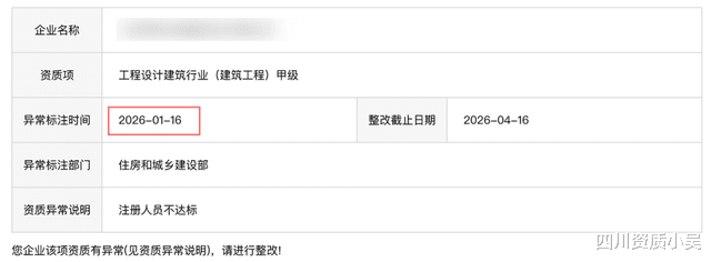 2026年1月16日,住房和城乡建设部在全国建筑市场监管公共服务平台(四库一平台)集中标注了一批“资质异常”企业。