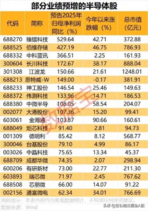我们可以看到,在已经披露业绩预告的半导体公司中,不少企业实现了净利润的大幅增长,部分公司的增幅甚至超过了500%。这不仅是行业景气度的直接体现,更是公司核心竞争力的有力证明。