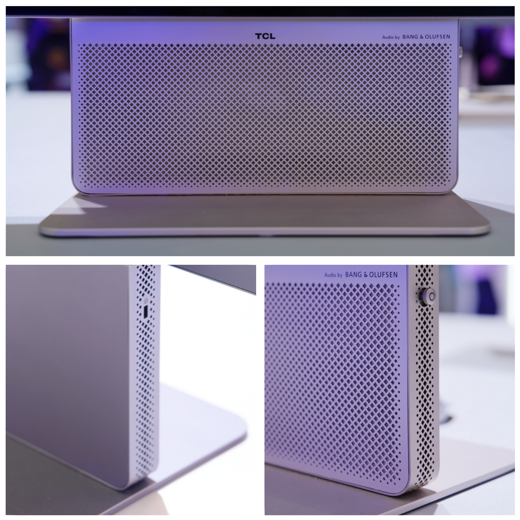 底座前置了B&O深度定制音响,前置出音设计相对于传统显示器下出音来说可以更出色,搭配独立声学芯片据说可以在游戏时达到听声辨位的空间感。