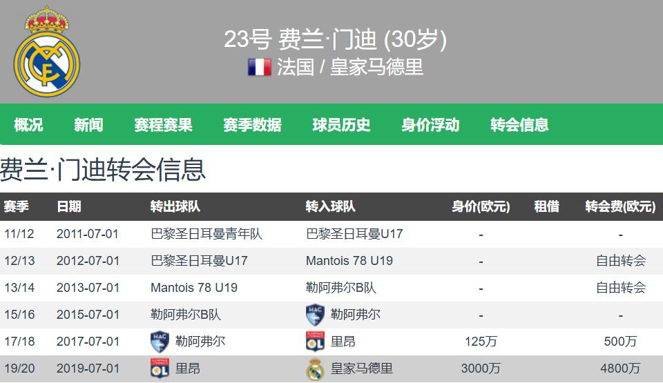费兰-门迪于2019年以4800万欧元的转会费从法甲里昂加盟西甲皇马,至今各项赛事共为皇马出场202场,贡献6球12助。费兰-门迪这样的玻璃人,皇马是想卖也卖不掉,球员的税前年薪高达1042万欧元,合同至2028年6月底,还有2年半合同,费兰-门迪大概率要在皇马躺平了,等到合同到期,届时32岁的他基本上就要退役了,这脆弱的身体已经很难继续职业生涯了。