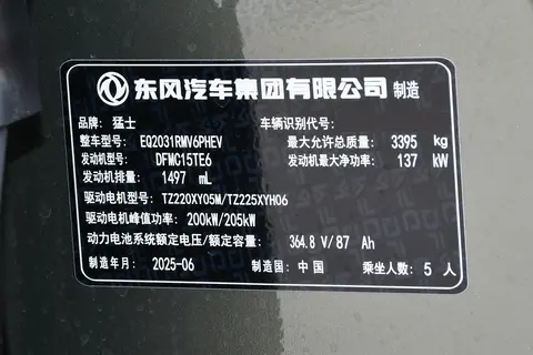 动力方面,猛士 M817 搭载的 2 挡纵置 11 模 PHEV 混动系统表现均衡。其发动机为东风马赫 M 系列的 1.5T 纵置越野专用款,功率为 145kW,前后配备双电机,前电机功率 200kW,后电机功率 205kW,系统综合功率 505kW,换算成马力约为 551 匹,扭矩达到 848N・m。从数据来看表现不俗,实际驾驶体验同样出色。绿灯起步时,动力响应迅速,0-100km/h 加速仅需 5.2 秒,在市区超车时信心十足;高速行驶到 120km/h 时,再加速依然动力充沛,不会出现后劲不足的情况。
