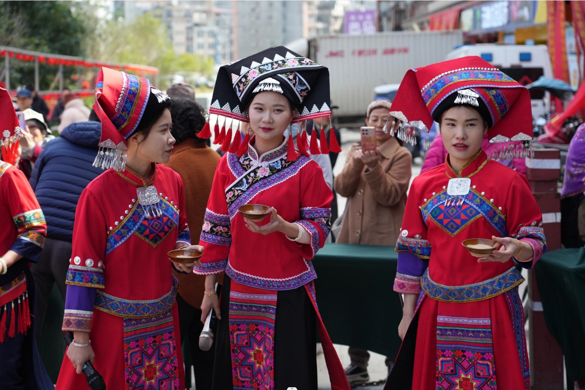 腊月二十八那天,天刚蒙蒙亮,世纪养生园里就已经热闹起来了。壮瑶儿女穿着盛装,头戴银饰,在养生园的入口处迎接每一位旅居家人的到来。一句句“远方的客人,欢迎你”,一声声悠扬的芦笙曲,一下子就把仪式感拉满了,让人心里暖暖的。