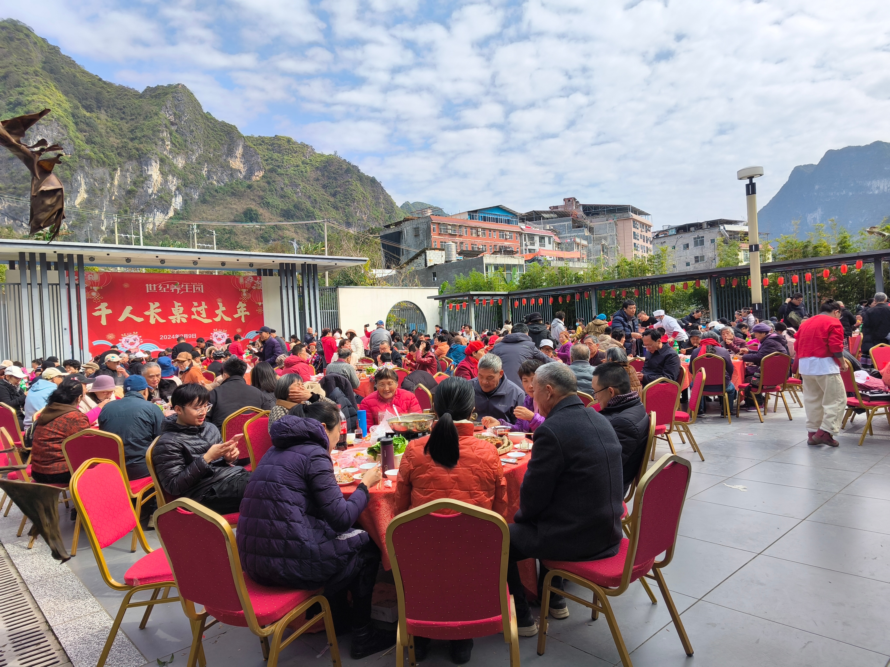 长桌宴在巴马,有着悠久的历史,是瑶家最高礼遇的宴席,平时只有招待远方贵客、庆祝重大节日的时候,才会摆开。这一次,世纪养生园把这份传统习俗,和候鸟人的团圆期许结合在一起,打造了这场千人规模的盛宴,既是对瑶家传统文化的传承,也是对每一位旅居家人的深情馈赠,这份心意,格外珍贵。