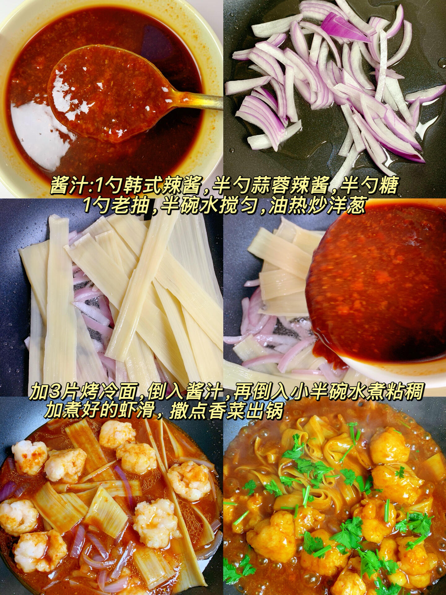第一次做这道菜时,我还担心会翻车,没想到味道居然比外面餐馆的还好吃。虾滑的鲜、冷面的韧、酱汁的浓,完美融合在一起,家人都说比韩式拌饭还下饭。现在这道菜已经成了我家餐桌上的常客,不管是周末聚餐还是日常便饭,端出来总能被秒光。