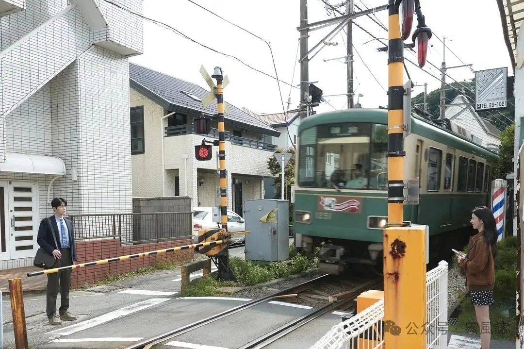 例如男女主第一次在日本相见分别时隔着铁路,栏杆落下分隔两人、没能好好告别,一辆列车开过,周浩镇已经离开了。