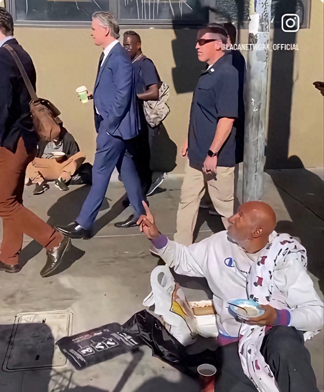 加州州长西装革履,手捧咖啡,双手插兜从流浪汉面前漠然走过,这一幕引发外网热议。有人洗白说这是“文化差异”。未经求助不应强行帮助,是对隐私的尊重;但立刻有网友回击,这分明是“洗地文学”巅峰,把冷漠包装成精致利己主义。按照这种逻辑,医生见路人心梗倒地,只因对方没张嘴求救就袖手旁观,也算“尊重”?这根本不是文化差异,而是冷血的借口。