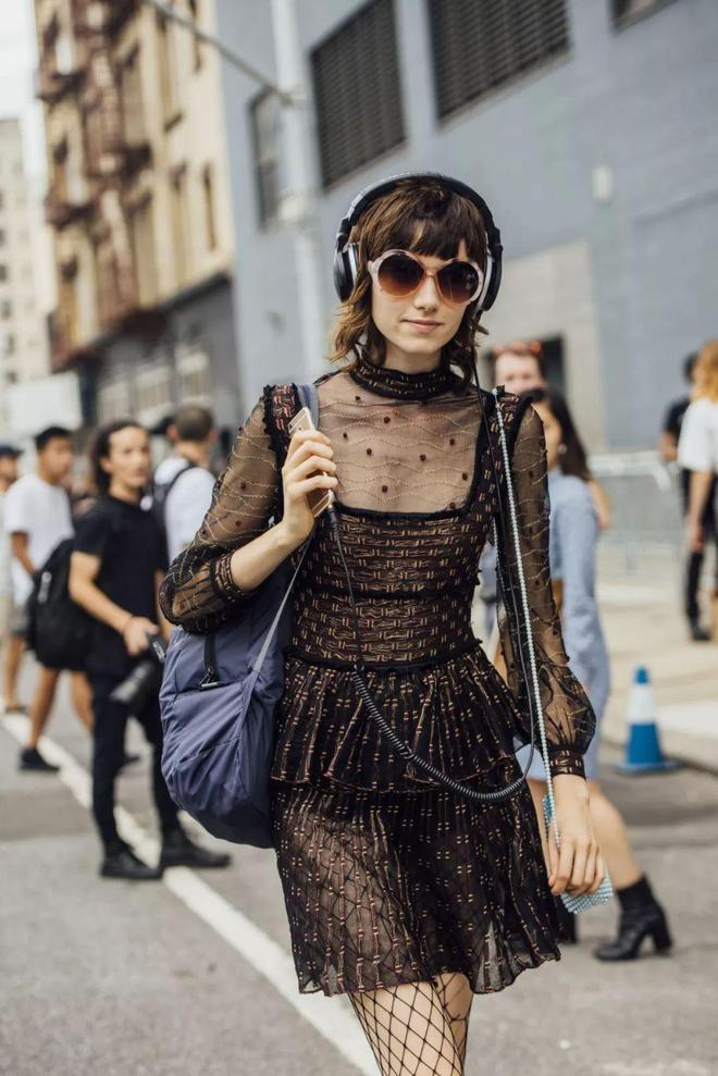 黑色的仙女裙,更显性感朦胧,与短发的结合,略显一丝神秘的美感。