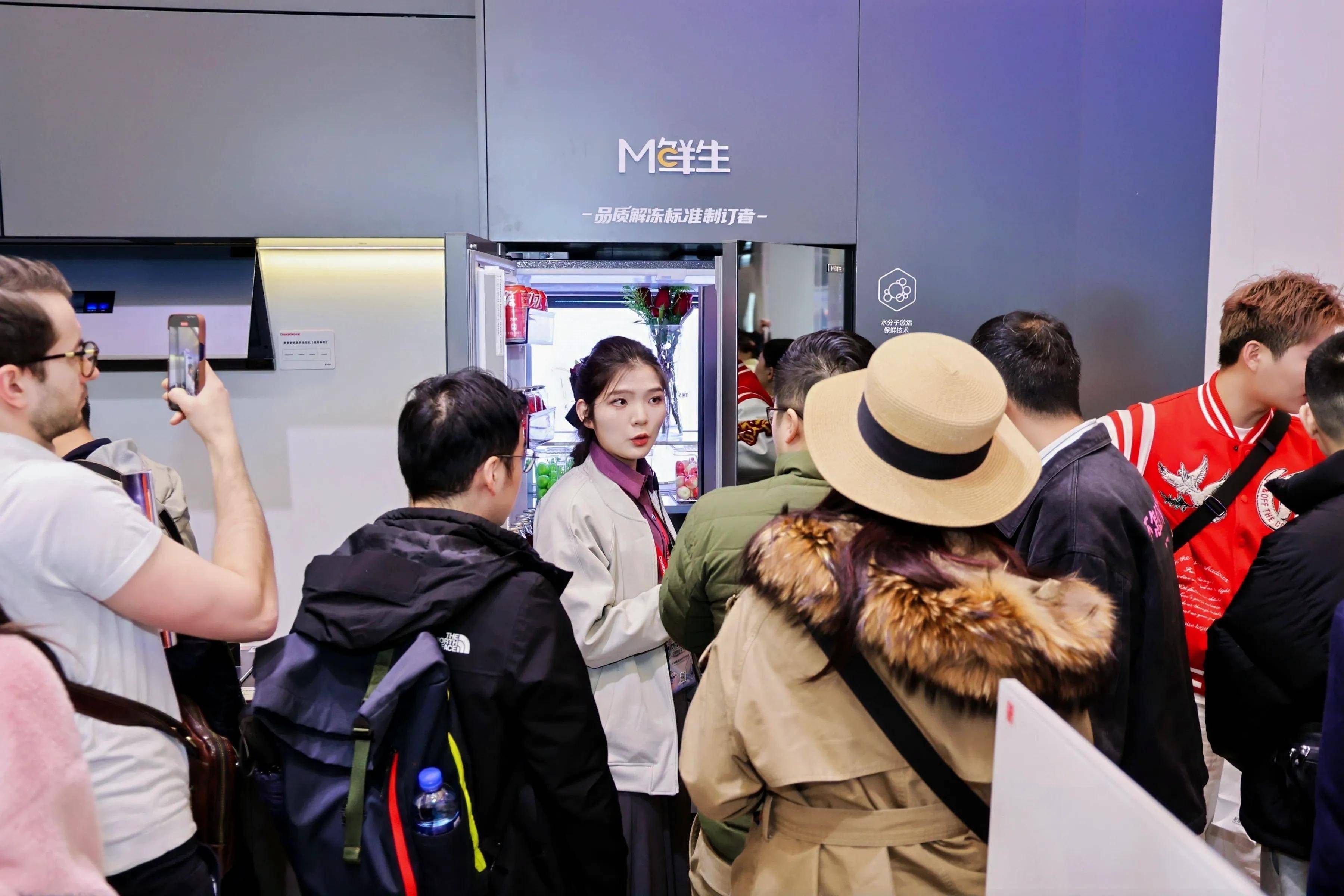 冰洗与厨电展区,美菱AI冰箱以水分子激活保鲜、AI温湿度精控等五大核心技术,实现食材全周期智能管理;全屏外观AI洗衣机搭载蓝氧去残留、全流程AI洗护算法,搭配人感星空投影氛围灯,将科技与生活美学融为一体。AI健康厨房实现烟机、灶具、热水器、净水器烟烹联动,风随火起、智能安防;鲜活水茶吧机以AI精准控温打造健康饮水场景,重构传统家电的现代体验。