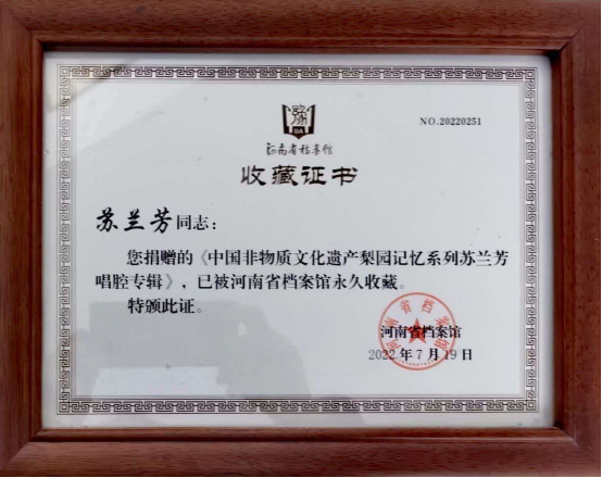 苏兰芳始终牵挂豫西调传承,深知传承关键在人。2020年,99岁的她出席豫西调薪火传承仪式,为传承基地揭牌,将传承人牌匾授予弟子厉琦,毫无保留地传授演唱技巧与从艺准则。2025年,103岁的她接待戏曲学子探访,反复叮嘱“原汁原味的东西不能丢,要守住戏曲的根和魂”。