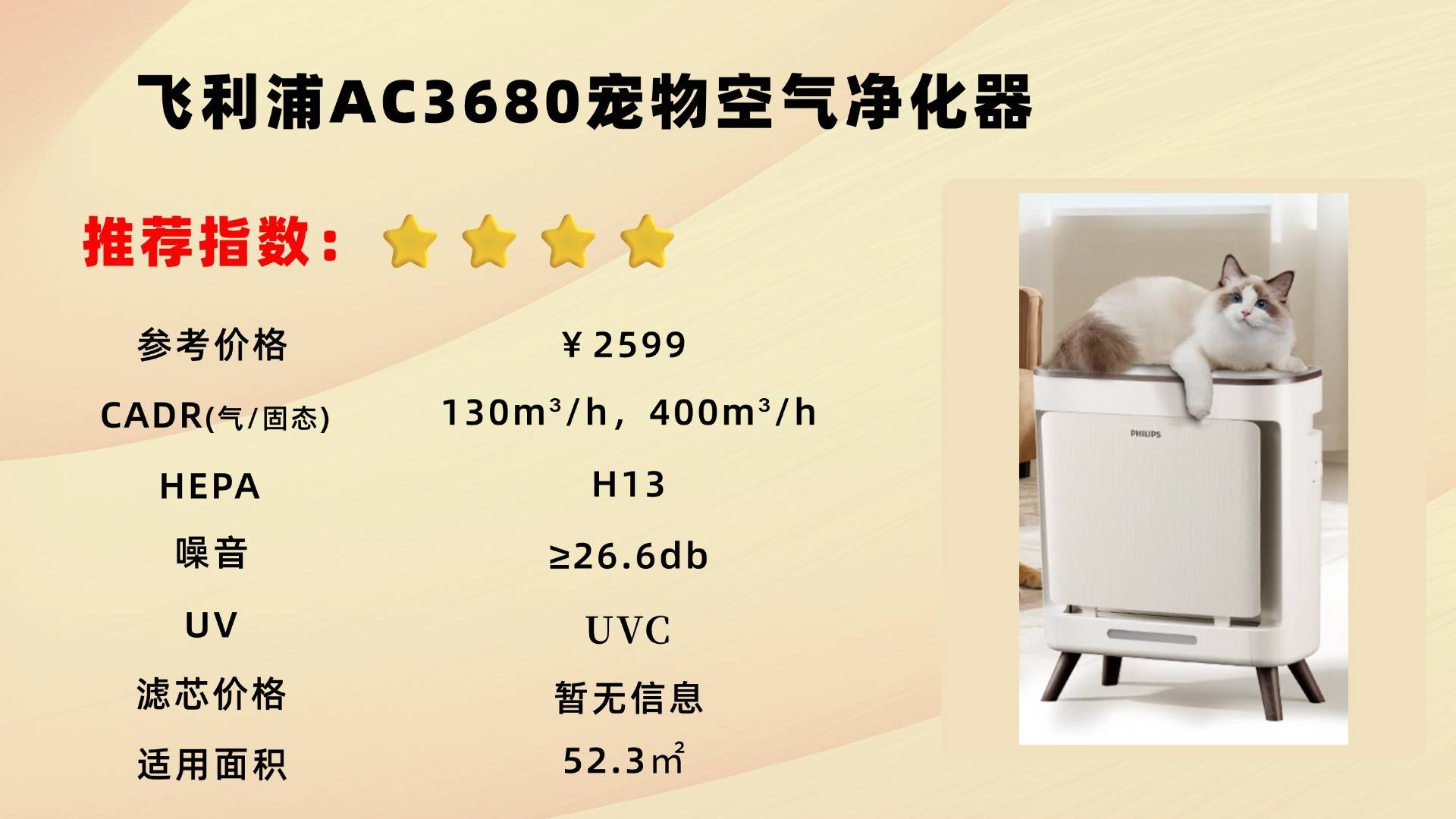 飞利浦 AC3680 在猫咖这种高密度环境中,运行表现相对稳定。高风量搭配高颗粒物 CADR,使它特别适配空气流动频繁、宠物毛发多的场景。这款机器的滤芯挺耐用,抗衰减效果比普通家用款强,能更好地应对长时间连续运行的需求。同时它的噪音控制在同档位里算温和的,对于既在意顾客体验又关注猫咪舒适度的猫咖来说,用它更利于维持店内空气的稳定与舒适。