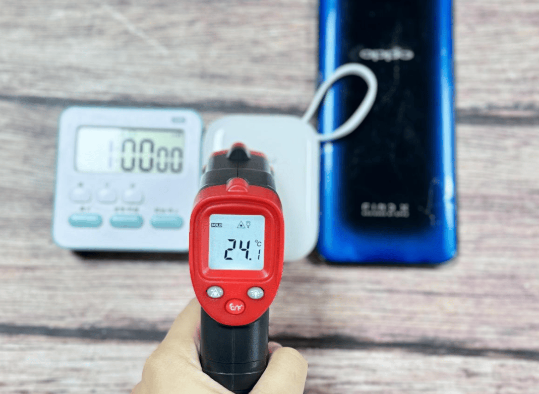 ★ ★ ★ ★ ★西圣PBS半固态充电宝:在整个实测过程中,西圣PBS半固态充电宝的控温和散热上的表现可以说是天花级别的存在,测评的1个小时中,充电宝和机身都没有出现发烫的情况,温度仅只有24.1℃,主要是这一款充电宝在控温上搭载了NTC温度传感阵列,在加上MPC智能控温算法,一边充电一定控温,用起来安全感直接拉满!