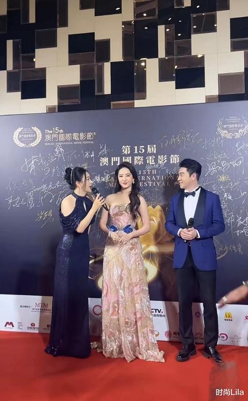 刘亦菲澳门国际电影节,烫金色礼裙仙欲感拉满,不修图也美麻了