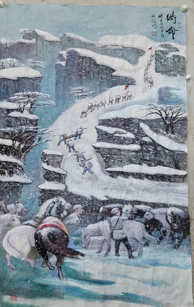 命运的馈赠总在不经意间降临。许文河调任后勤工作后,相对灵活的时间让他得以全身心投入创作。连队的墙板、黑板报成了他的"第一块画布",英雄事迹、战争故事、战友身姿、军营风貌,都在他的笔下变得鲜活。"那时不懂什么技法,全凭一股热爱。"许文河笑言,正是这份纯粹的执着,让他的作品被部队首长注意到。不久后,他为每个连队会议室创作的大幅画作,不仅美化了营区,丰富了部队官兵的文化生活,获得了大家的一致称赞,这也更让他坚定了"以画抒情"的信念。