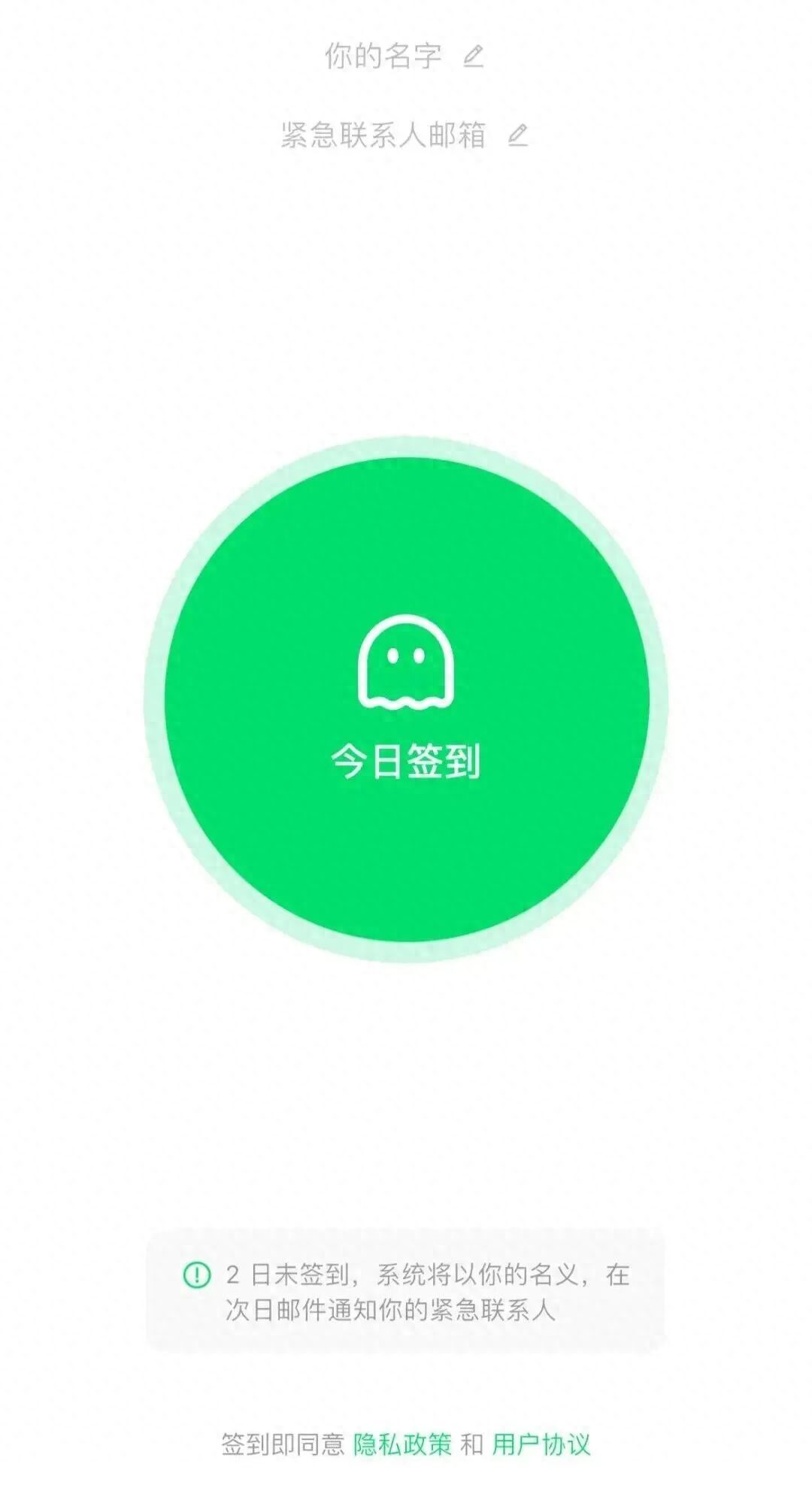 该应用是为独居人群打造的轻量化安全工具,用户需要设置紧急联系人并签到,若连续多日没在应用内签到,系统将于次日自动发送邮件告知紧急联系人。