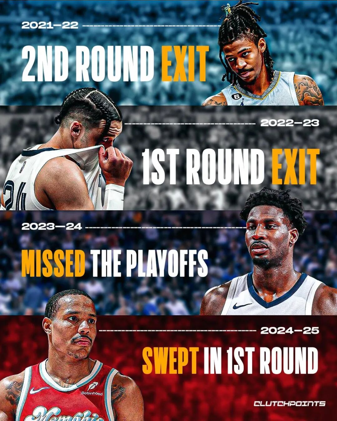 而在接下来的回合华子先后两次错失扳平甚至绝杀机会!,上图摆脱防守人空位三分不进;而在此后的二番战中,又是爱德华兹错失绝杀好戏106-108不敌灰熊。,常规赛两度错失绝杀,惨遭横扫。