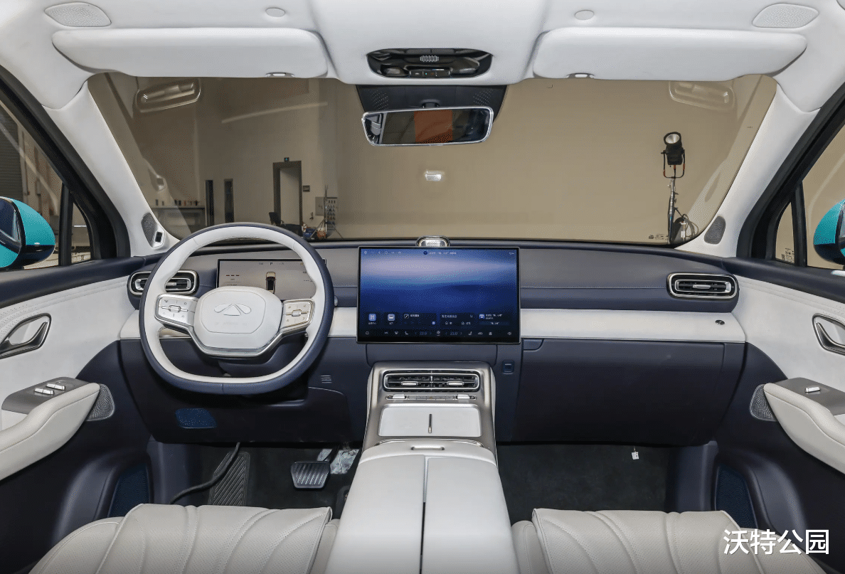 内饰部分,新车注重营造科技与豪华感,最引人注目的是中控台搭载的一块17.3英寸2.5K分辨率的大尺寸屏幕。前排提供了支持16向电动调节并集成了通风、加热、按摩功能的双零重力座椅,第二排座椅靠背也支持电动调节。此外,车内还提供了如23扬声器伯牙品牌音响、-6°C至50°C可调温的车载冰箱以及后排小桌板等提升舒适性与娱乐性的配置。