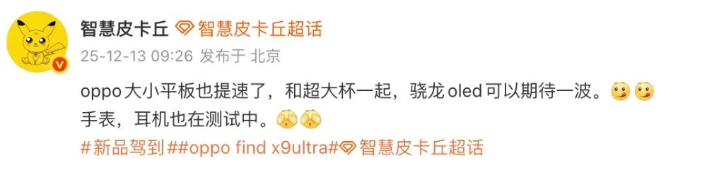 另外,博主@智慧皮卡丘 在去年的一份爆料中也提到了类似的信息,即“oppo大小平板也提速了,和超大杯一起”。