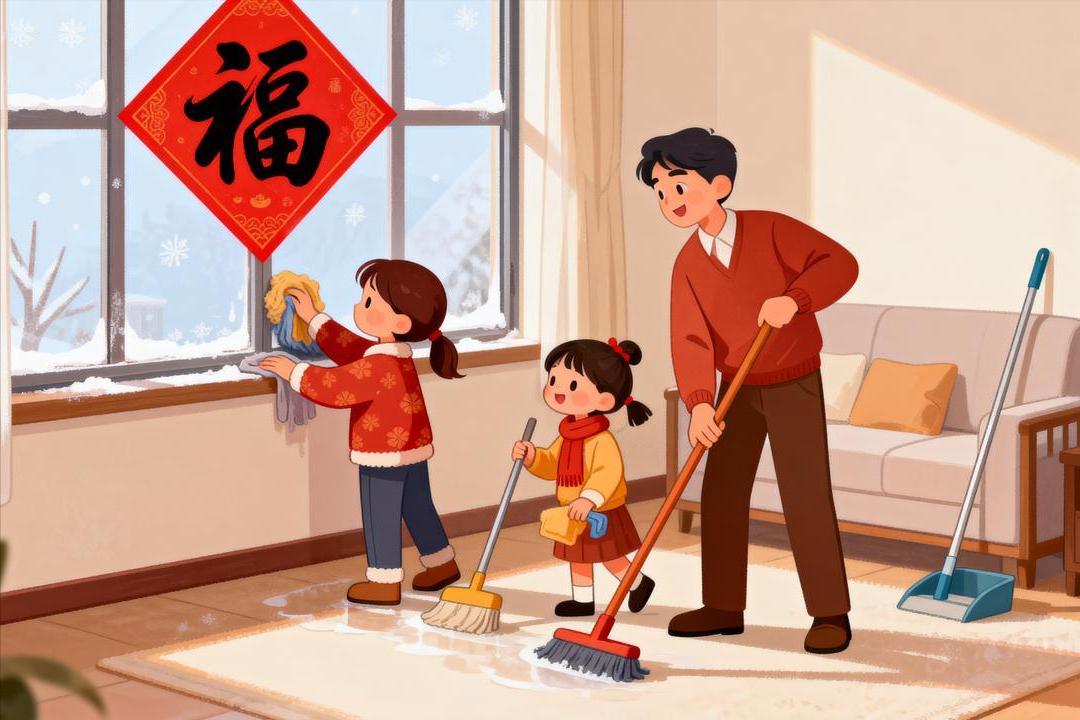 一为“洒扫”,即年终大扫除的序幕。《礼记》有载:“凡内外,鸡初鸣,咸盥漱,衣服,敛枕簟,洒扫室堂及庭。”腊月扫尘,寓意“除陈布新”,扫去一年的晦气与尘埃,以洁净清爽之姿迎接新春。初二此日,多从祭祖的场所或屋宅高处开始拂拭,象征性地开启全面清扫。