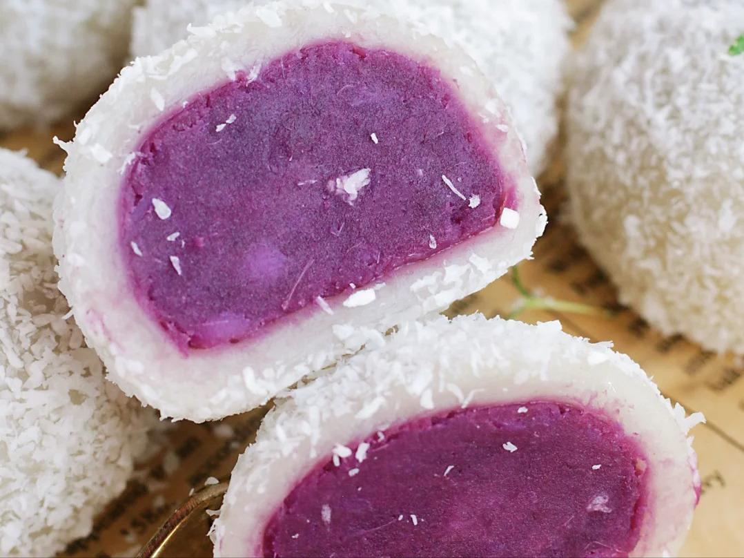 分享一款好吃不胖的小甜点 —— 紫薯山药糯米糍,满满的椰蓉香,一口下去,顺滑香甜的紫薯山药在嘴里化开,简直太绝啦!
