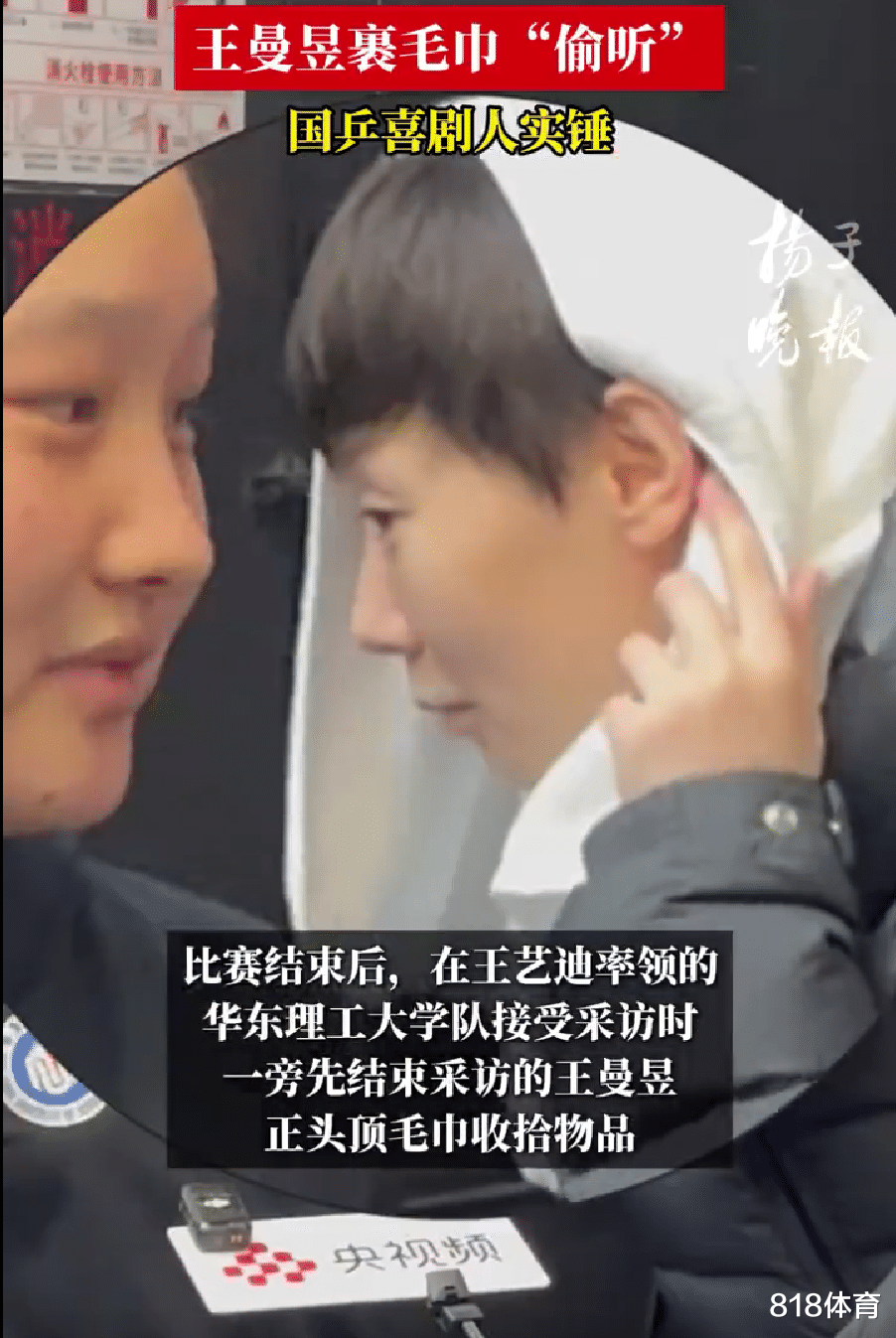 12月27日消息,12月26日结束的乒超总决赛女团半决赛,山东鲁能3比1华东理工大学。本场比赛,王曼昱独得两分帮助山东鲁能以总比分3比1获胜。赛后,华东理工大学队接受采访时,王曼昱裹着毛巾在一旁偷听,妥妥的“国乒喜剧人”!