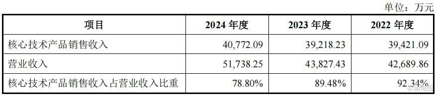 报告期各期,吉和昌核心技术产品或服务收入占营业收入的比例分别为92.34%、89.48%和78.80%。2024年公司核心技术产品或服务收入占营业收入比例下降较大主要原因系为优化产品结构公司选择将部分标准工艺异构醇醚类产品进行委外生产。