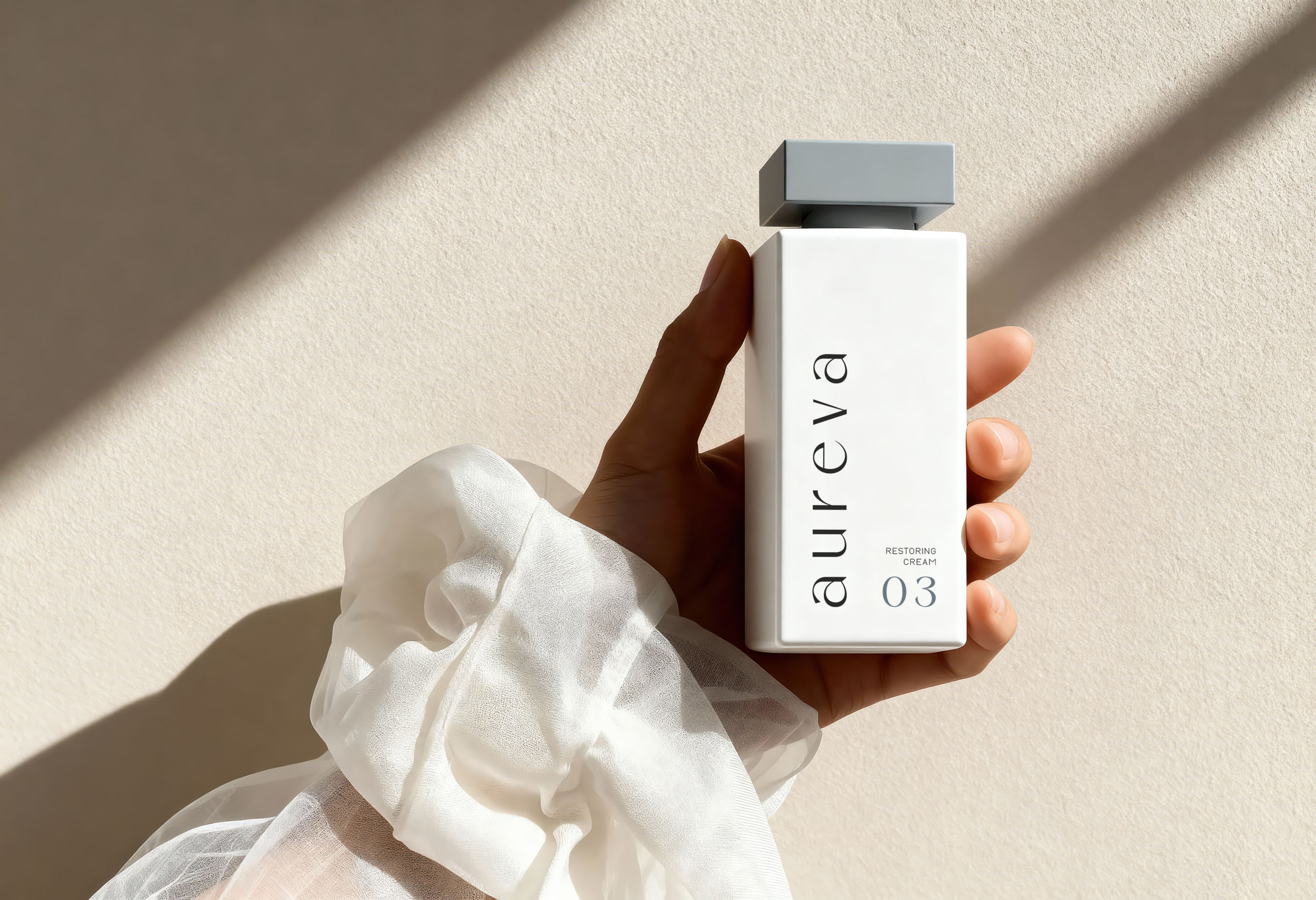 Aureva的包装设计走简约路线,以纯净的白色为主色调,给人一种清新、干净且专业的感觉。瓶身线条简洁流畅,没有过多繁杂的装饰,凸显了其质感和高端定位。其瓶盖采用了柔和的色彩,如浅粉色、浅绿色、浅蓝色等,为整体简约的设计增添了一抹灵动与温馨,仿佛在诉说着温和、天然的特性。瓶身上的“aureva”以黑色字体呈现,简洁醒目,与白色瓶身形成鲜明对比,增强了视觉冲击力。系列编号以较小的字体标注在下方,清晰明了,方便消费者识别和选择。这种设计不仅体现了品牌对简约美学的追求,更传达出一种回归自然、纯净护肤的理念,让消费者在看到包装的瞬间,就能感受到那份宁静与安心。
