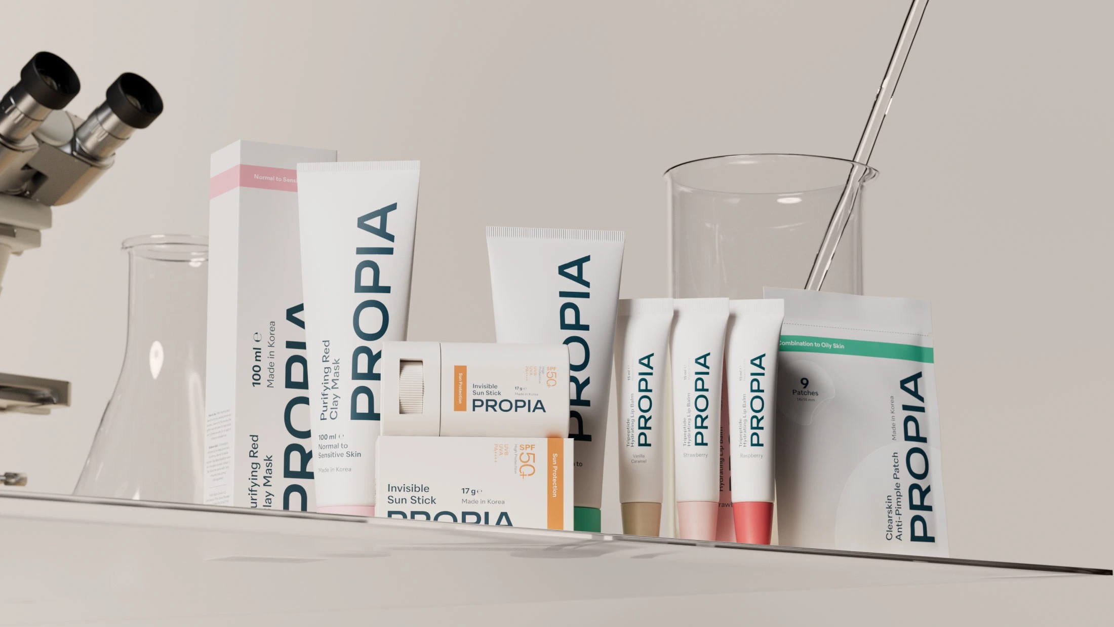 PROPIA的包装设计同样以简约清新示人。白色的管身和盒身搭配深蓝色的名称“PROPIA”,色彩对比强烈,简洁大方且极具辨识度。管状包装设计符合人体工程学,方便消费者握持和挤压使用,体现了实用主义的设计原则。包装上明确标注了名称、容量、适用肤质等信息,让消费者一目了然。部分的包装采用了柔和的粉色等色彩点缀,在简约中增添了一丝活泼与柔美,满足了不同消费者的审美需求。整体来看,PROPIA的包装设计既注重外观的简约美感,又兼顾了使用的便利性,将品牌的专业与贴心展现得淋漓尽致。