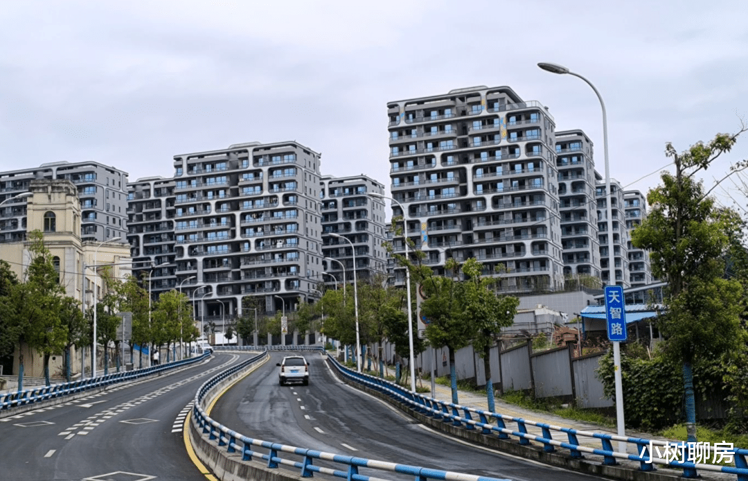 小树从刘家坪地铁站出来后,走路约20分钟后终于看到了这个小区。它位于茶园主干道通江大道旁边一段斜坡之上,外立面还是非常显眼,跟周边小区形成了鲜明的对比。